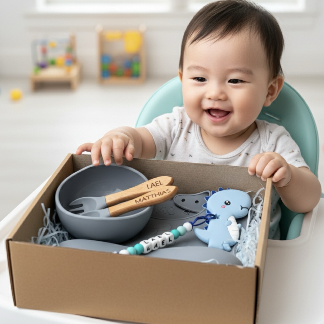 We specialize in creating high-quality, memorable, and safe products for your little one. Our core range features chewy, food-grade silicone teethers—including versatile 2-in-1 designs and convenient teethers with integrated holders—all crafted to soothe irritated gums and aid sensory development. But we’re more than just teethers! As a one-stop shop, we offer a variety of personalized baby essentials, such as customized silicone feeding sets. We ensure peace of mind by using only 100% non-toxic, BPA-free, and lead-free materials, making us the go-to source for soft, stylish, and safe gear tailored exactly to your baby’s needs