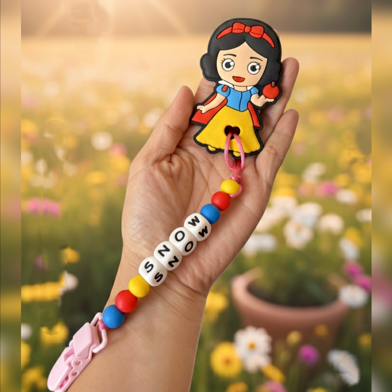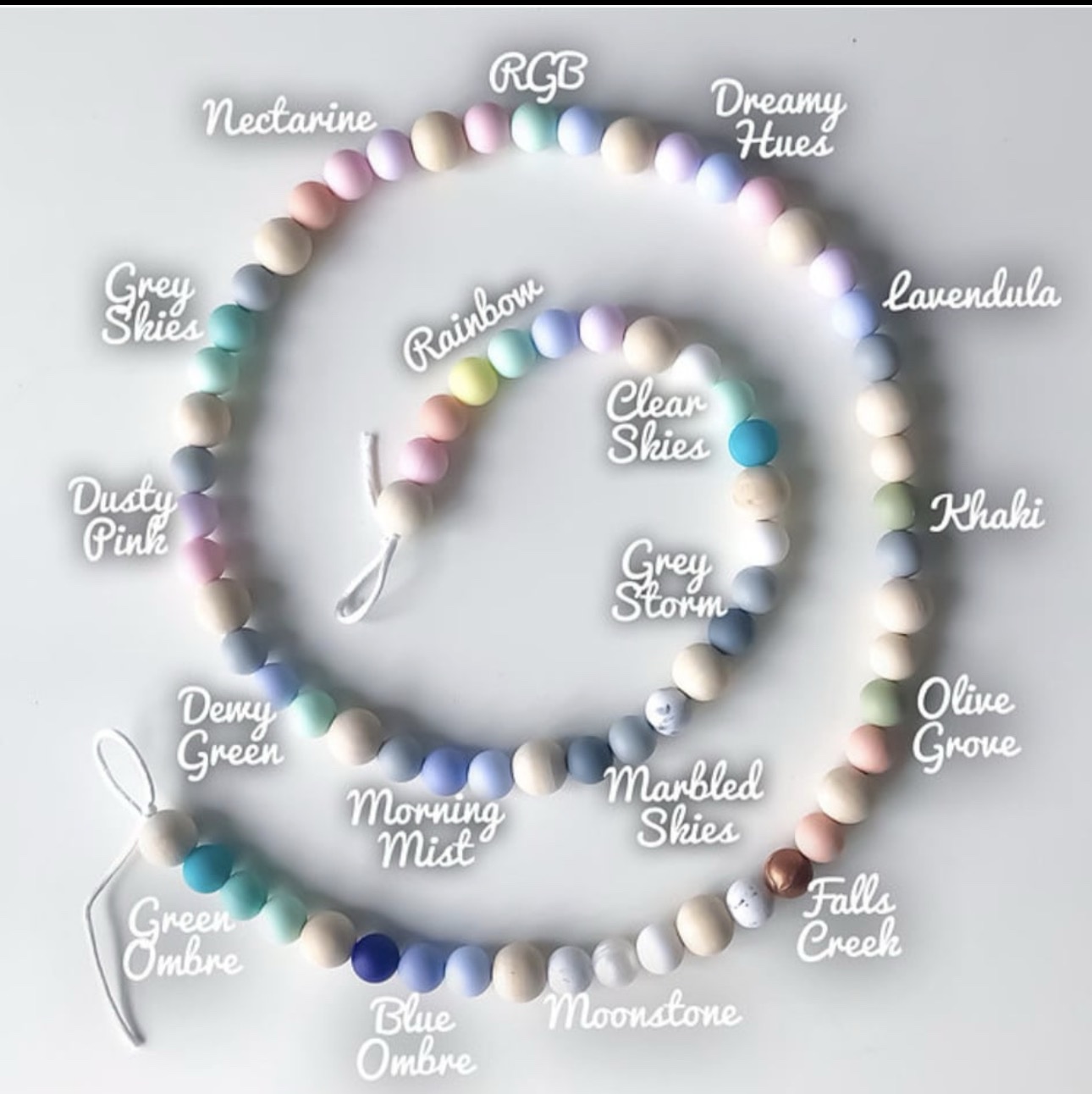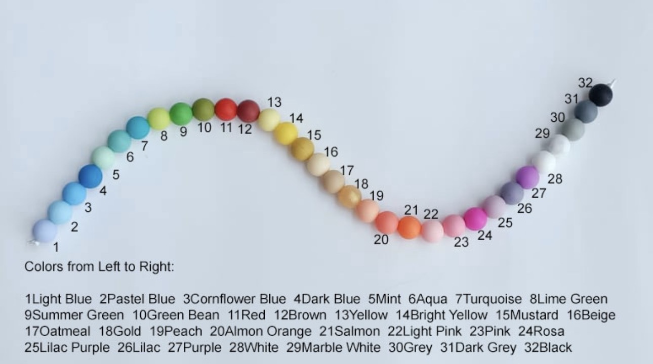 - Firmly secured onto a strong organic cotton cord with 100% food grade silicone rust free plastic clip.