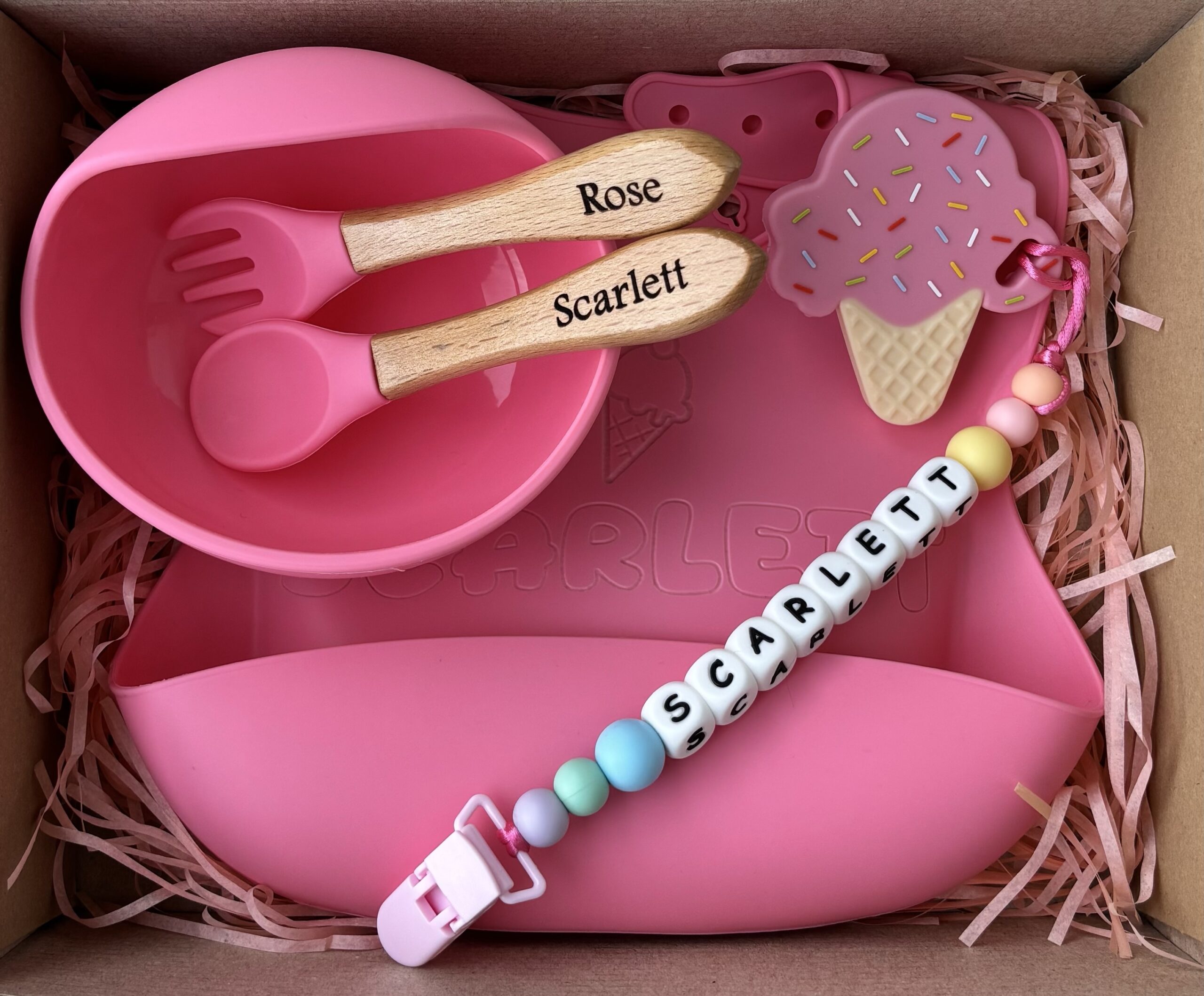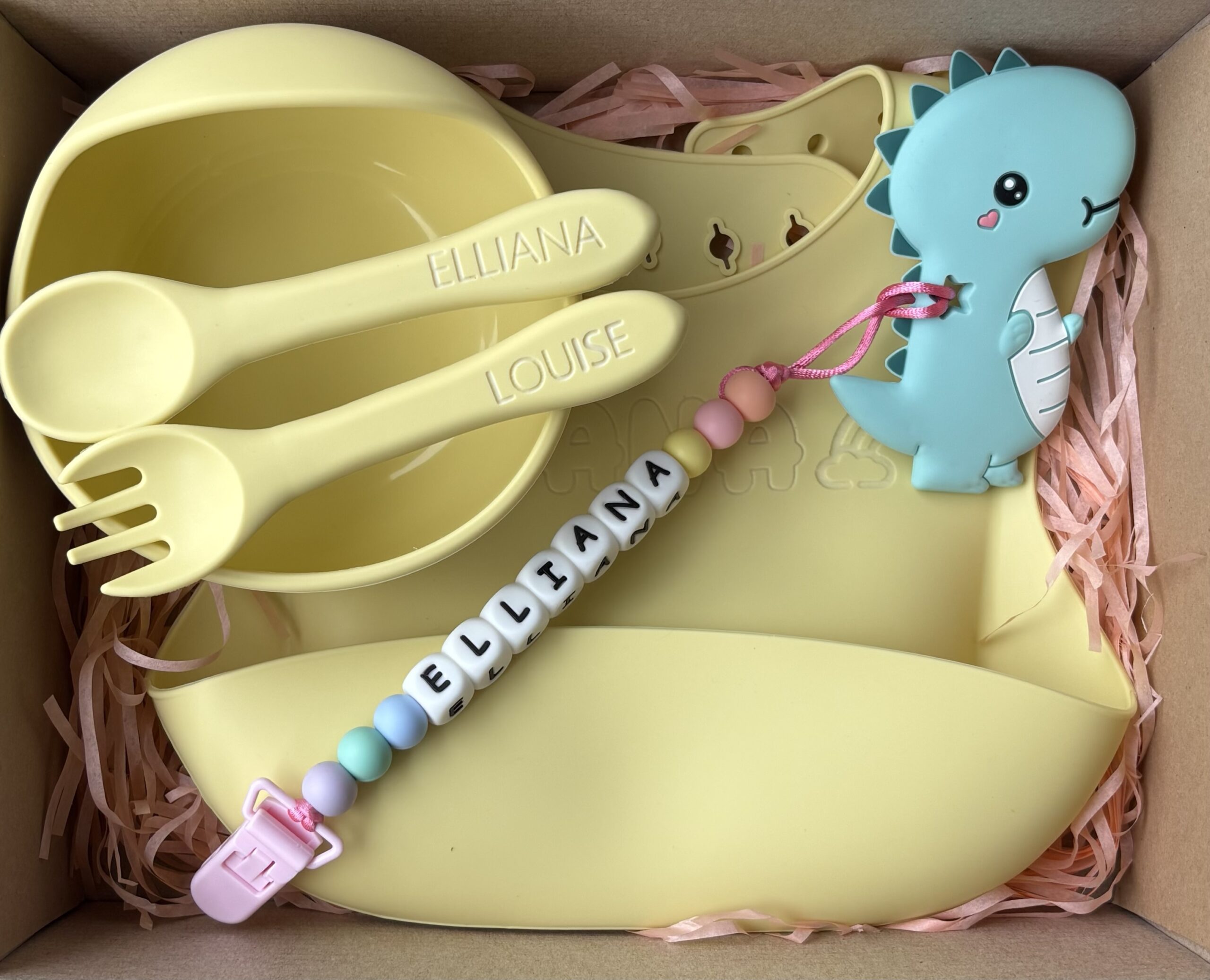 1 x  Silicone Bowl, Bib, Spoon and Fork (Colour of your choice)-You can choose colors from this link